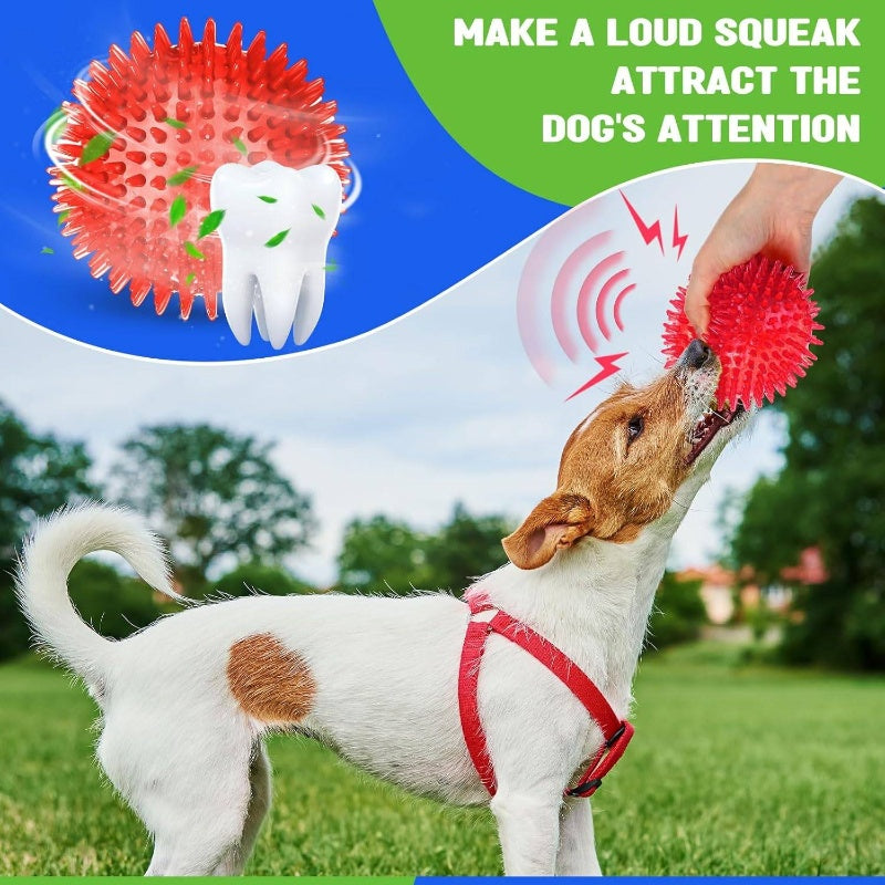 12 Pack 4.5" Heavy Duty Squeaky Dog Balls | Medium Large Dogs, Large Spiky Ball Toys for Aggressive Chewers, Pet Training, Clean Teeth, Outdoor, 4 Colors, Natural Rubber